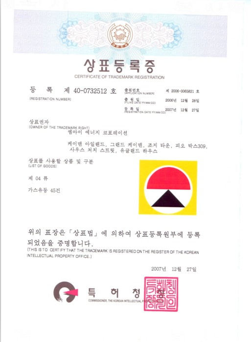 韓國商標注冊證樣本