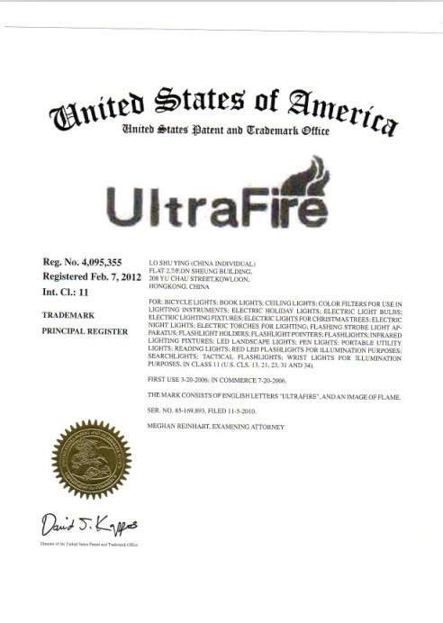 美國商標注冊證書(shū)樣本