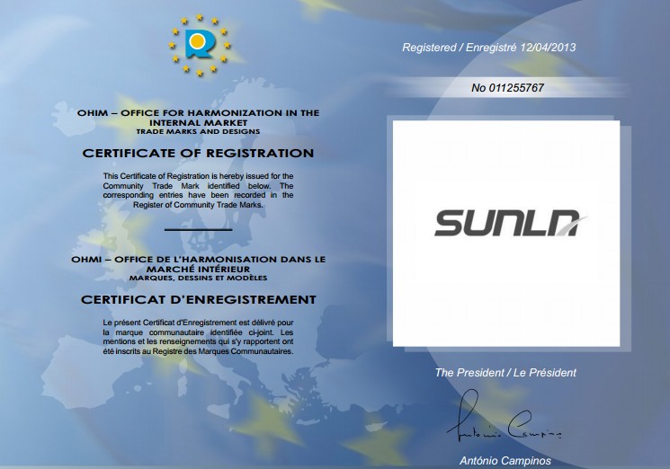 歐盟商標注冊證書(shū)樣本