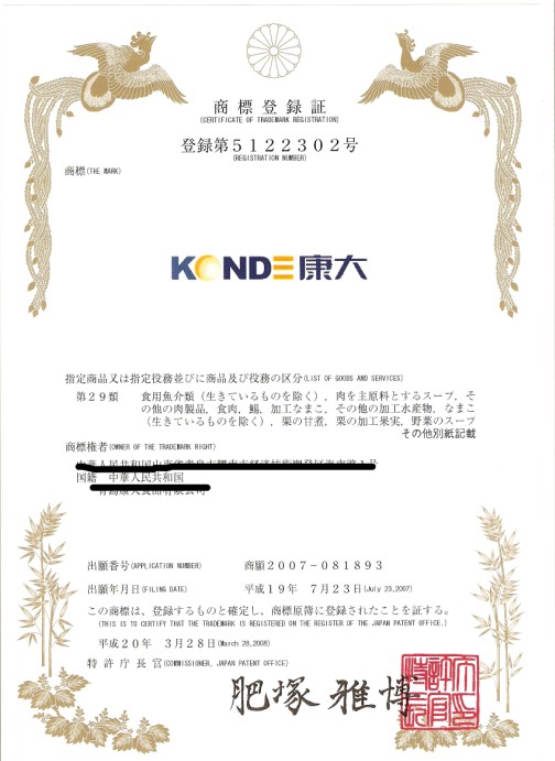 日本商標注冊證樣本