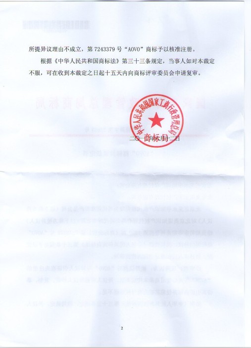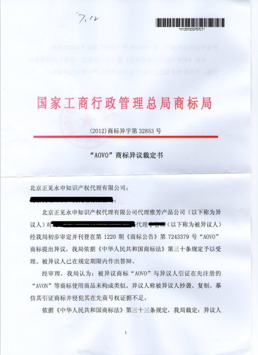 商標異議裁定書(shū)(成功)