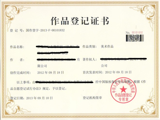 版權登記證書(shū)樣本