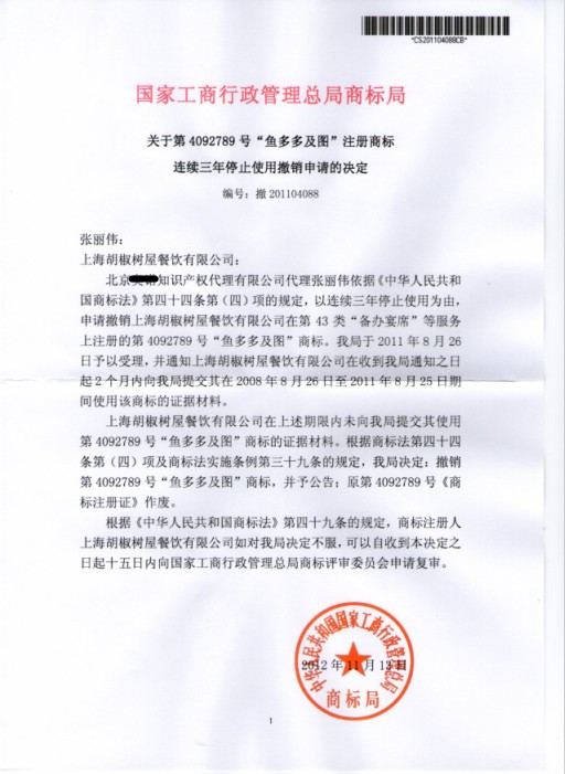 商標撤銷(xiāo)申請裁定書(shū)