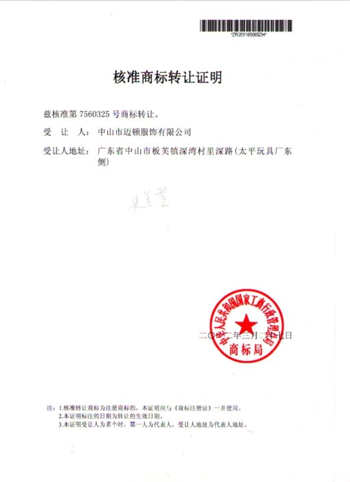 商標轉讓證明樣本