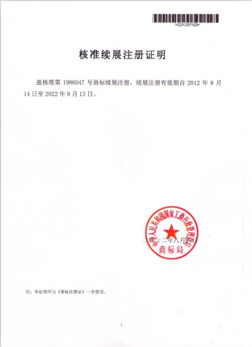 商標續展證明樣本