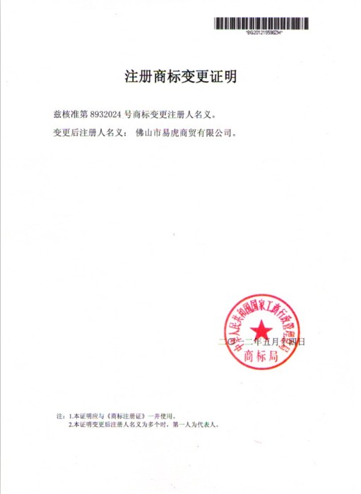 國內商標注冊證書(shū)樣本